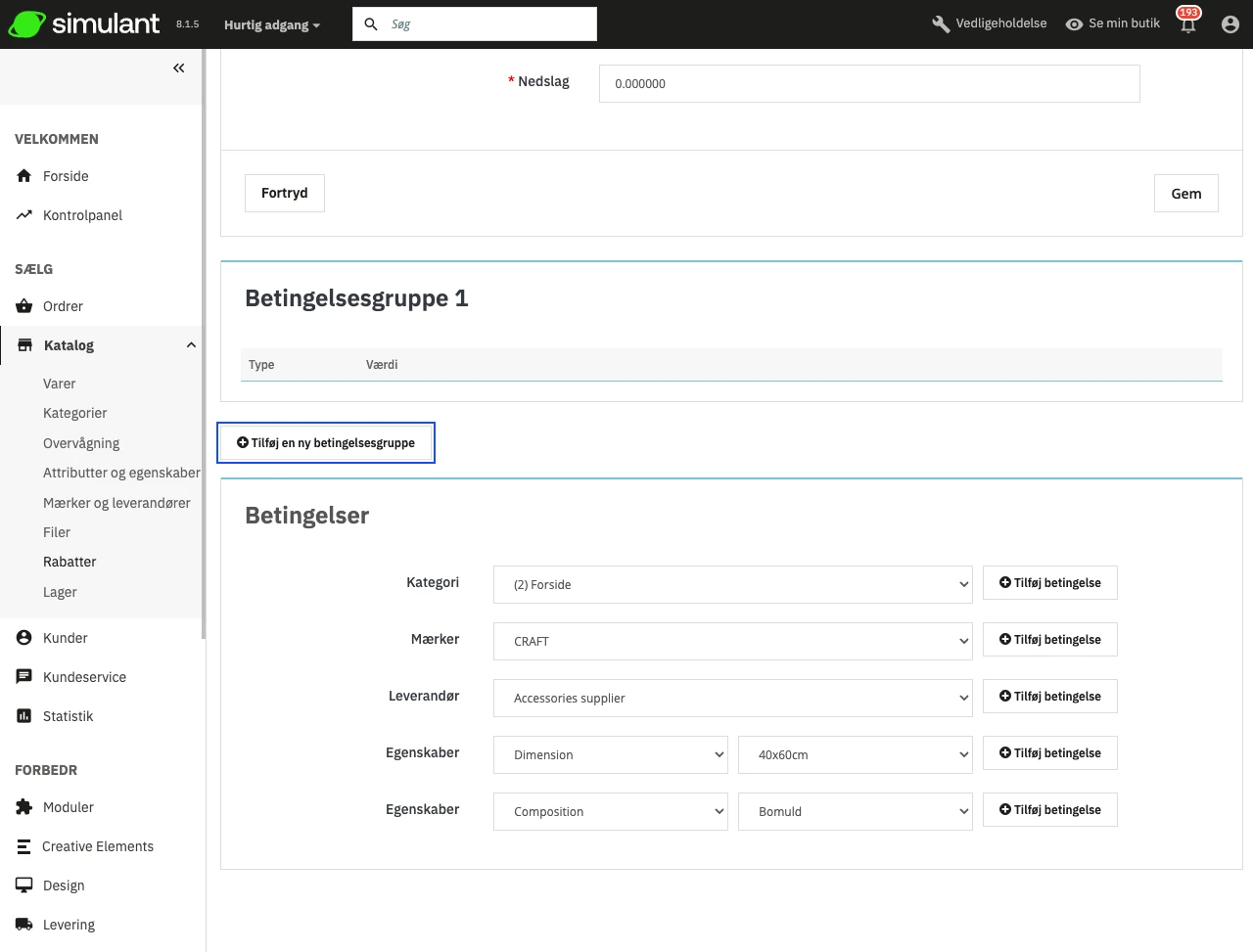 Hvis der ikke er angivet betingelser, vil prisreglen gælde for ALLE varer i dit katalog. Vær opmærksom på ikke at glemme betingelserne!