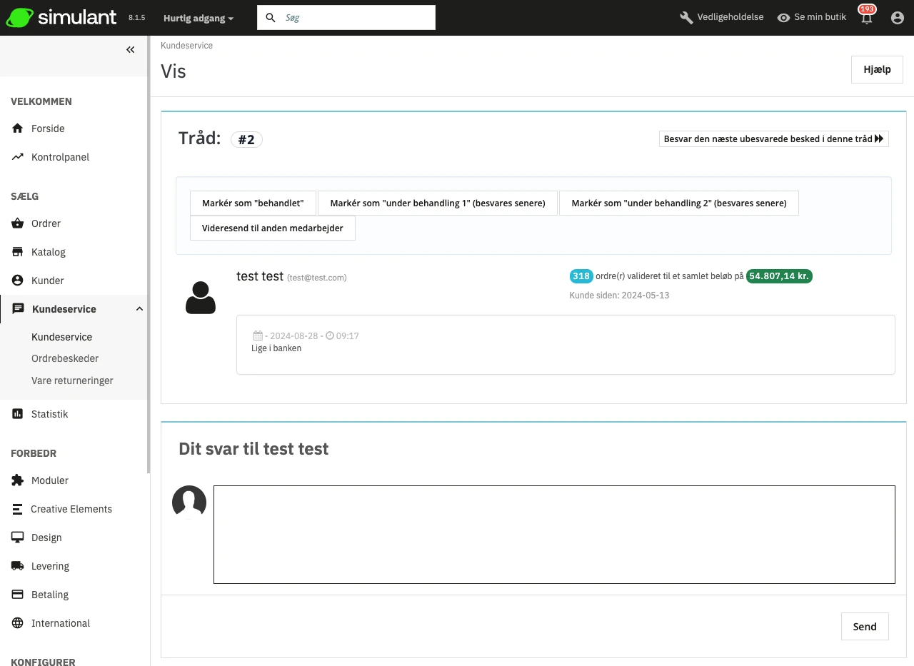 Simulant giver dig mulighed for at centralisere alle kundernes forespørgsler inden for systemet. Dette hjælper dig med at holde styr på, hvilke diskussionstråde der skal besvares, i stedet for at skulle kontrollere med alle modtagerne af mailen for at se, om nogen har svaret.