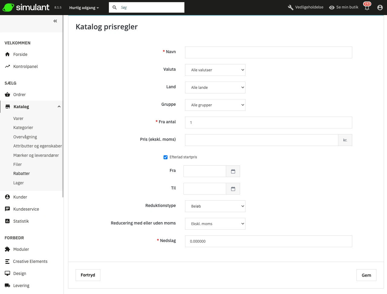 Hvis der ikke er angivet betingelser, vil prisreglen gælde for ALLE varer i dit katalog. Vær opmærksom på ikke at glemme betingelserne!